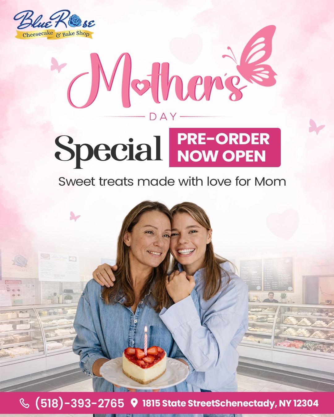 Blue Rose Cheesecake and Bake Shop was inspired after forty years of baking in the restaurant business, proudly serving Schenectady, NY and surrounding areas including Niskayuna and Stanford Heights. It all began in the early 1980s with the “little diner that could”, Blue Ribbon! During that time the bakery department was a one-person operation, baking and serving American classics like apple pie, muffins, Danish, and of course, New York-style cheesecake!
